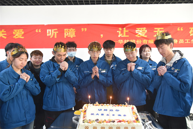 大家共同點燃蠟燭,在場人員或唱或手語表演生日歌表達祝福。一個溫馨的生日會,讓在場所有員工都感受到了華紡大家庭的溫暖和關(guān)懷。